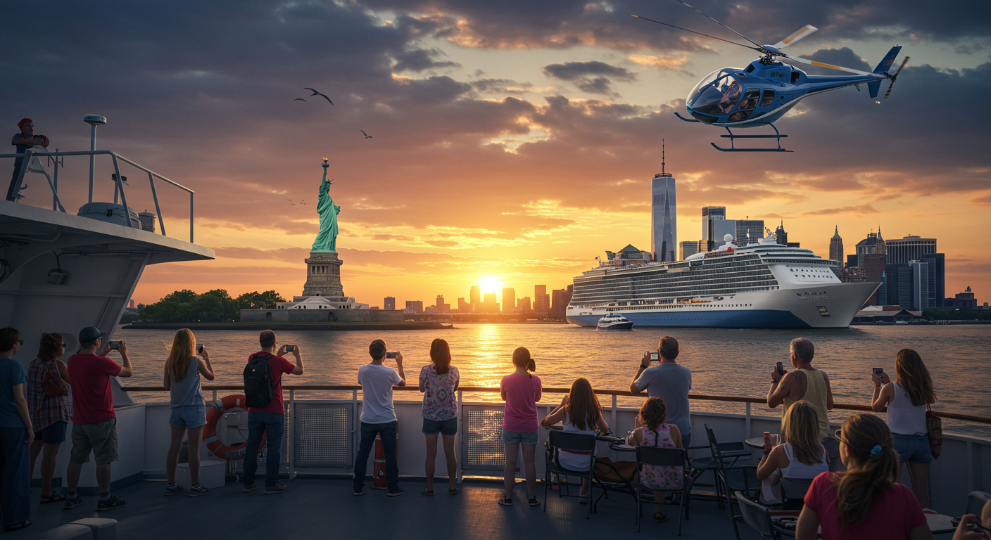 오늘은 자유의 여신상 페리부터, 야경 크루즈, 헬리콥터 투어까지